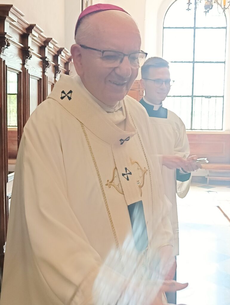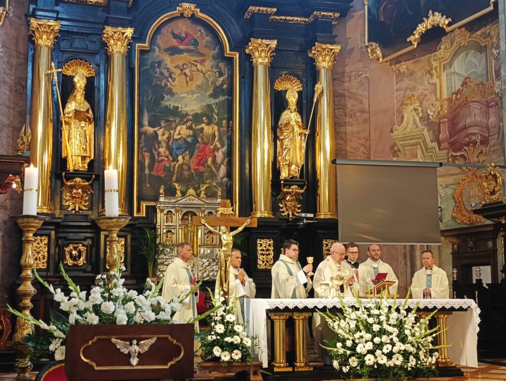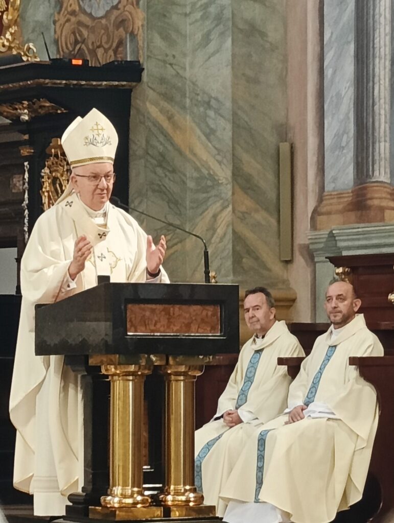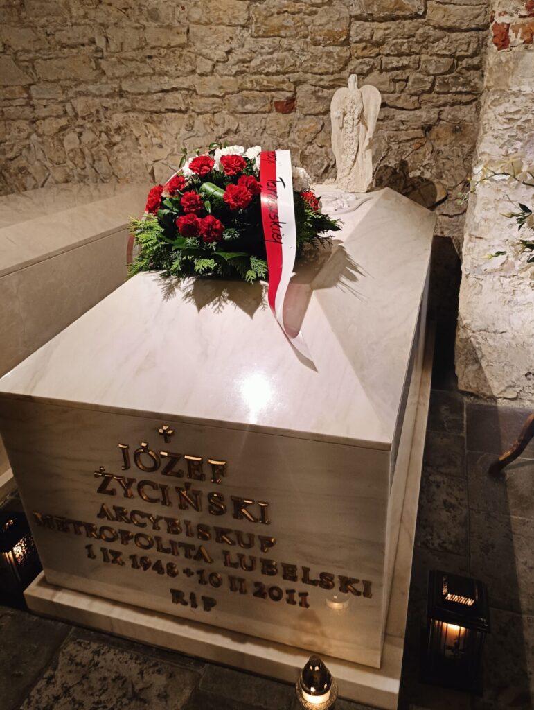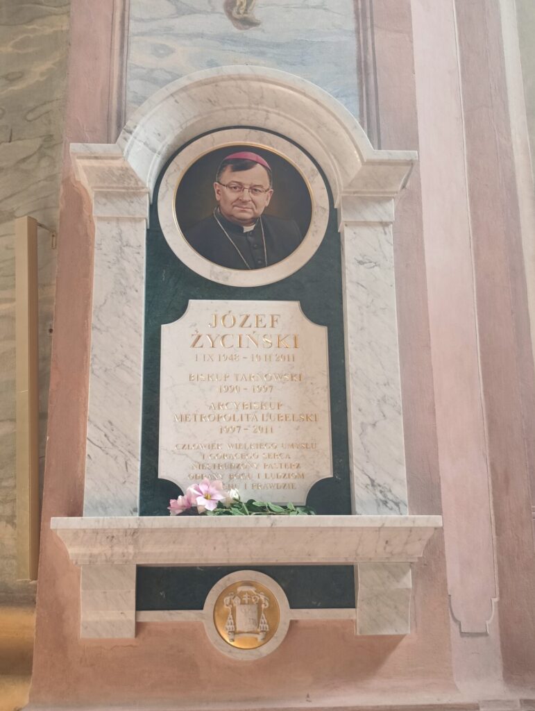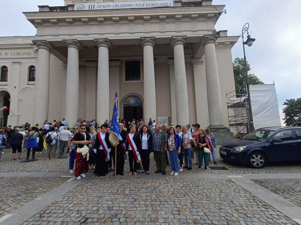 W sobotę, 6 września, odbyła się pielgrzymka jubileuszowa Akcji Katolickiej Diecezji Tarnowskiej do Archikatedry Lubelskiej, z okazji 30 rocznicy powołania stowarzyszenia Akcji Katolickiej. W drodze do Lublina zatrzymaliśmy się przy pomniku Rzezi Wołyńskiej w Domostawie – na modlitwę, zapalenie zniczy i złożenie wiązanki kwiatów. W Lublinie Mszy Świętej przewodniczył i homilię wygłosił Metropolita Lubelski Arcybiskup Stanisław Budzik. Po uroczystej Eucharystii złożyliśmy wiązankę kwiatów na grobie Arcybiskupa Józefa Życińskiego. W krótkiej prywatnej rozmowie z Ireną Klich Ks. Arcybiskup podkreślił, że w Nieczajnej ma zaprzyjaźnioną rodzinę Ks. Prałata Stanisława Sojki oraz że prywatnie bywał w naszej parafii.