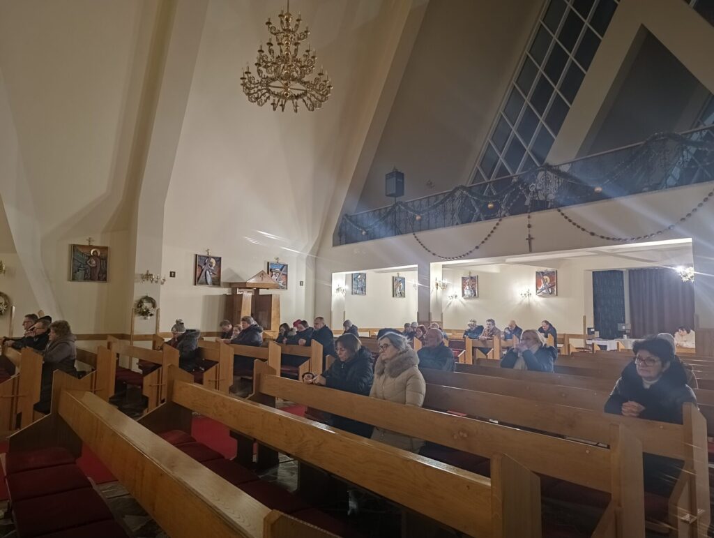 Pierwsza w tym roku Godzina Święta w naszej parafii – 1 stycznia 2026. Dodatkowo cieszył fakt, że w naszym kościele wspólnota parafialna modliła się wspólnie z Akcją Katolicką dekanatu Dąbrowa Tarnowska. Odnotowano obecność członków Akcji m. in. z parafii Zalipie, Smęgorzów, Szarwark, Dąbrowa Tarnowska, a spoza dekanatu – z Łęgu Tarnowskiego. Czuwający najpierw wysłuchali opisu Męki Pańskiej według objawień św. Katarzyny Emmerich. Potem w ciszy adorowali cierpiącego Chrystusa, polecając Mu na progu nowego roku sprawy pokoju na świecie, pokoju w rodzinach i swoich sercach. Na zakończenie Ksiądz proboszcz Stanisław Bieleń udzielił nam błogosławieństwa Najświętszym Sakramentem. Złożył również noworoczne życzenia… Panu Jezusowi.