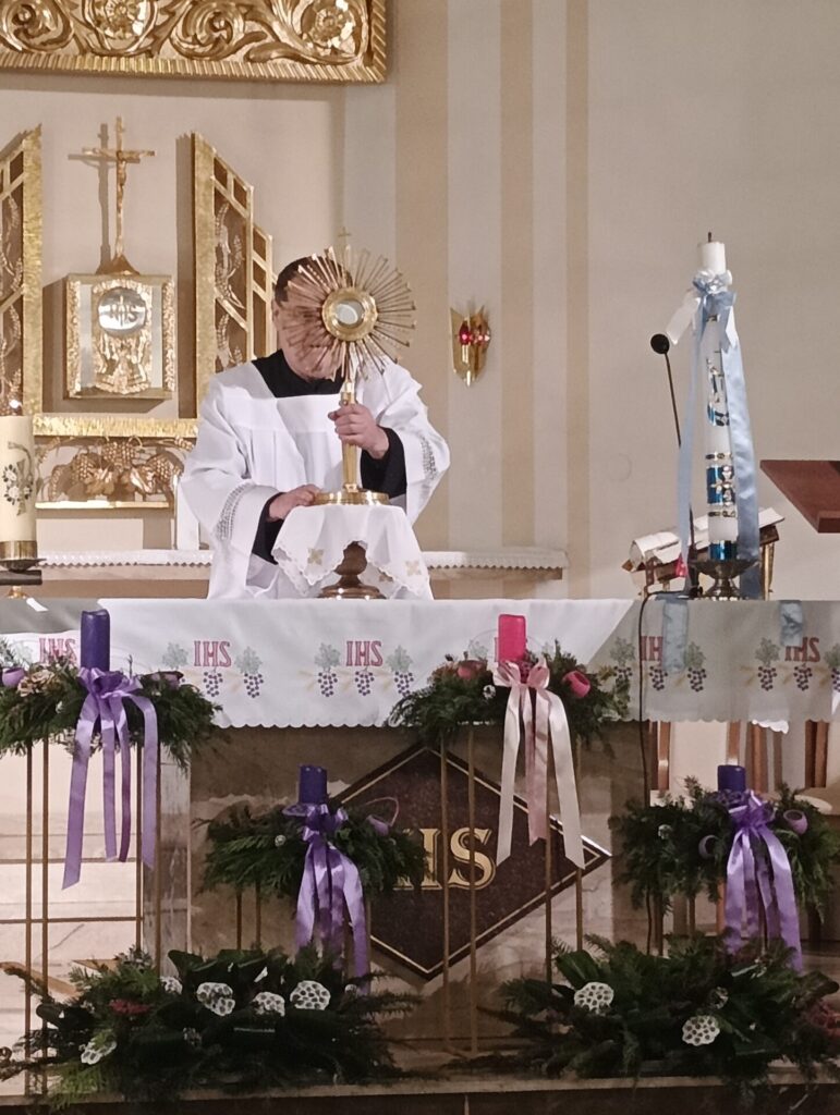 Niewielka grupa parafian adorowała Najświętszy Sakrament podczas grudniowej Godziny Świętej (4.12) w naszej parafii. Natomiast do parafii Dąbrówki Breńskie udali się członkowie Akcji Katolickiej z całego dąbrowskiego dekanatu. Z parafii Nieczajna w adoracji uczestniczyły: Barbara Białkowska, Irena Klich i Teresa Pulnik. Oba czuwania zakończyło kapłańskie błogosławieństwo księży proboszczów: Ks. Stanisława Bielenia i Ks. Wojciecha Prusa.