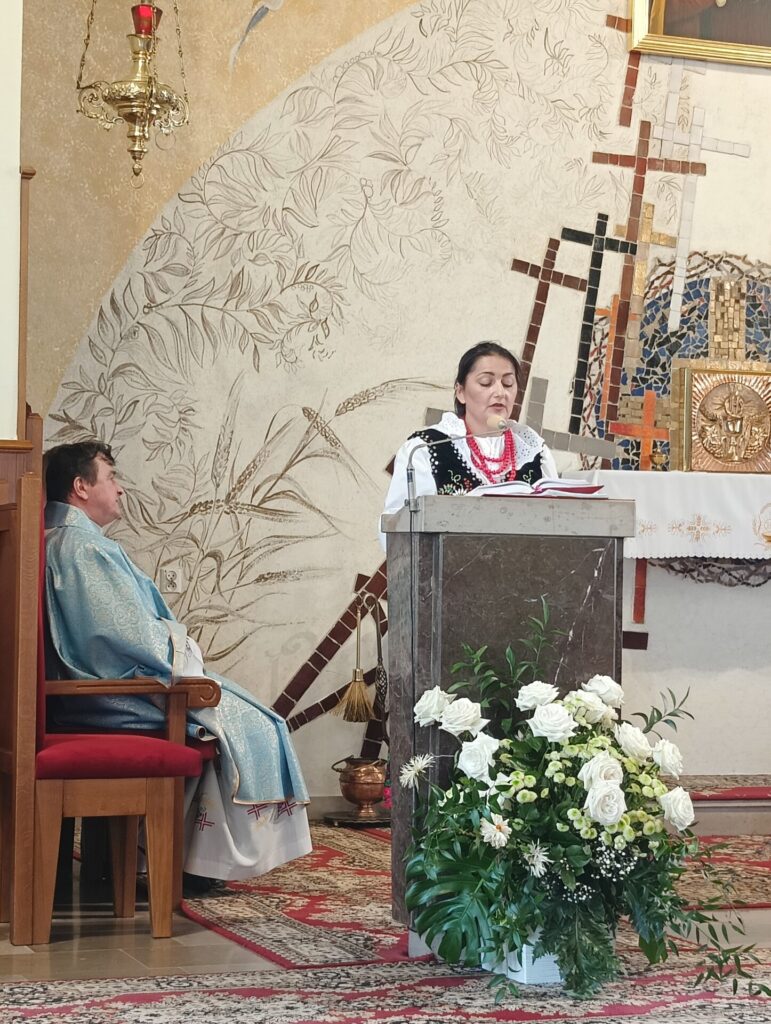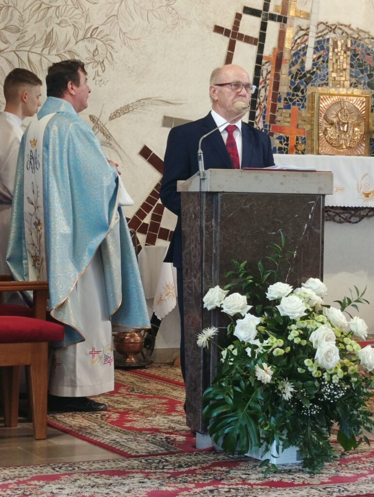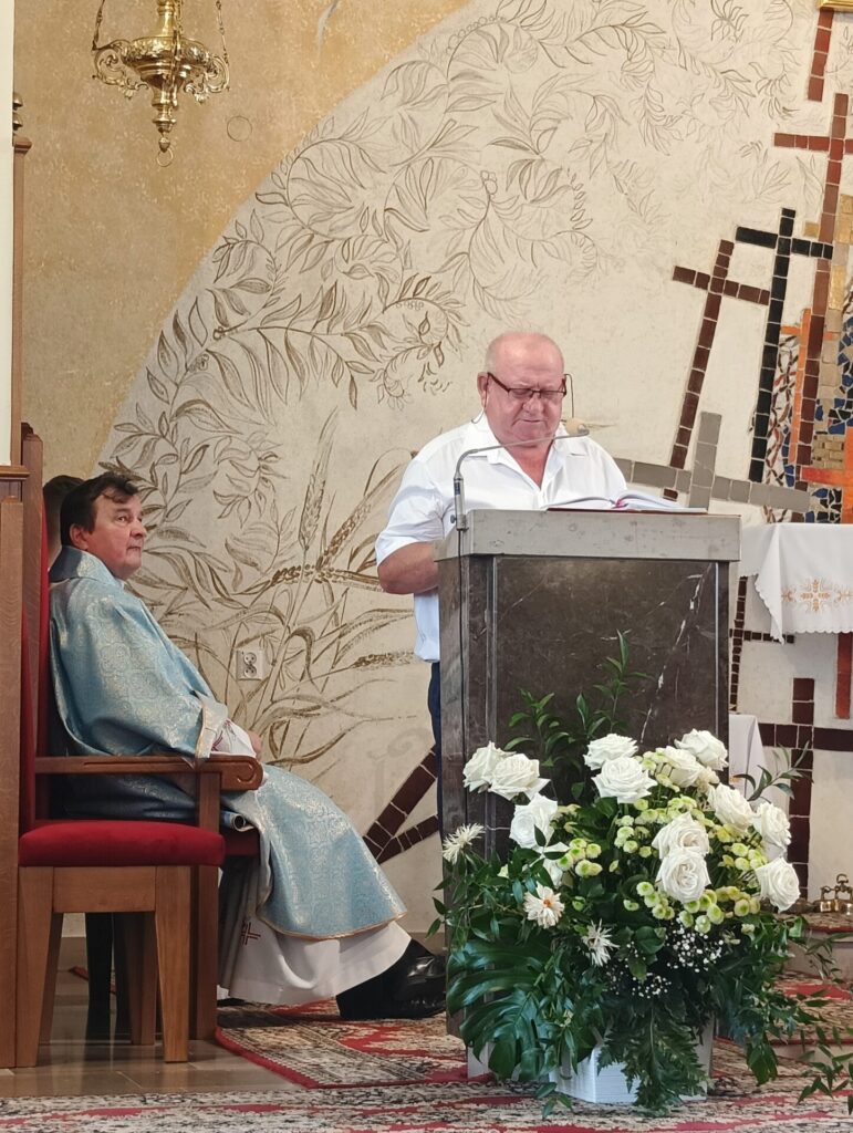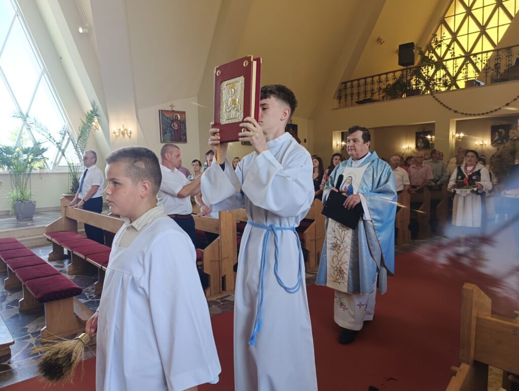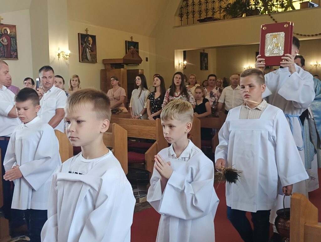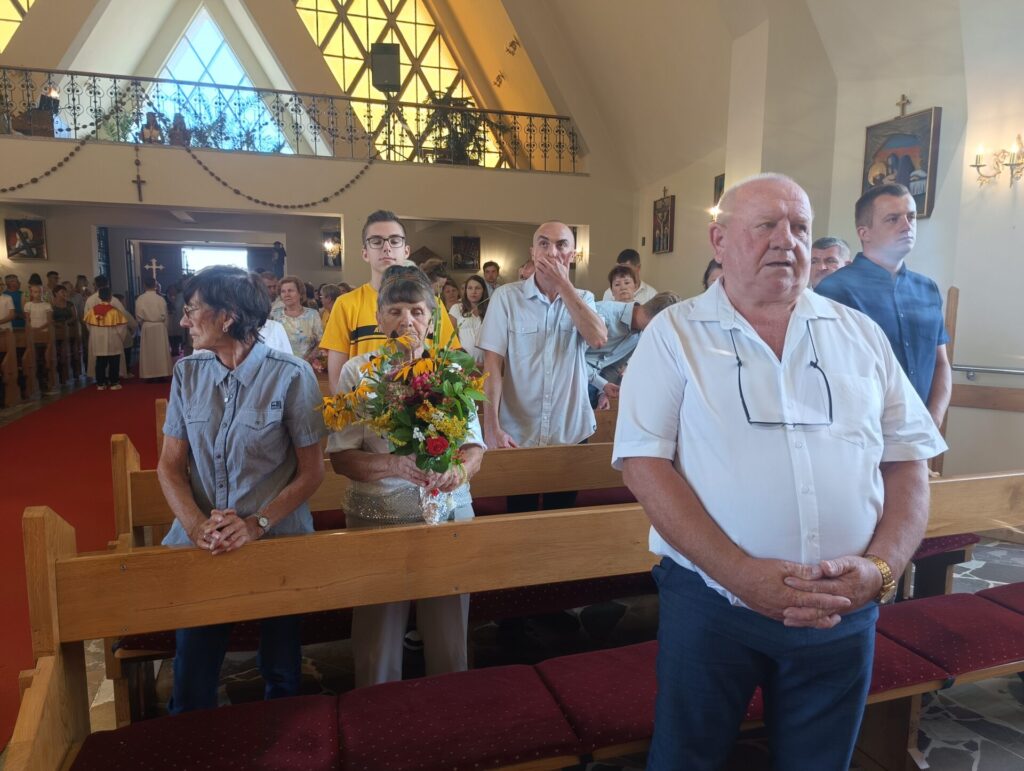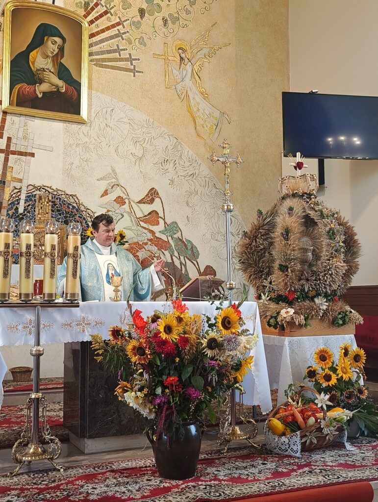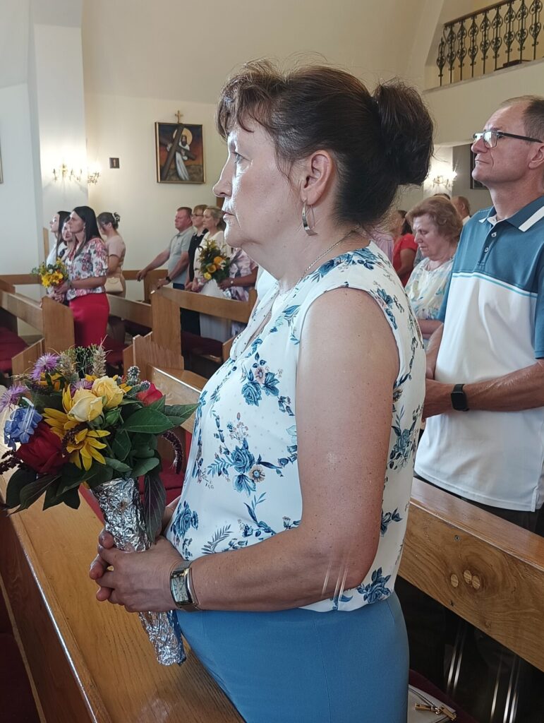 W piątkową uroczystość na każdej Mszy św. odbyło się poświęcenie ziół przyniesionych przez wiernych do kościoła jako wyraz wdzięczności Bogu i Matce Najświętszej za szczęśliwe żniwa. Natomiast na sumie Ks. proboszcz Stanisław Bieleń poświęcił jeszcze wieniec żniwny. Wykonało go Koło Gospodyń Wiejskich z Nieczajnej Górnej. „Gospodarze” uroczystości: Irena Łachut i sołtys Jan Bąba wraz z paniami z KGW wnieśli piękny wieniec i umieścili go w nawie głównej. Prośbę o jego poświęcenie wystosował do Ks. proboszcza Pan sołtys. Również on wraz z Ireną Łachut i Markiem Frącem włączyli się w Mszę Świętą jako obsada liturgiczna.