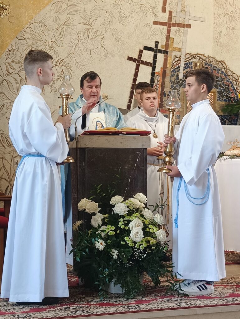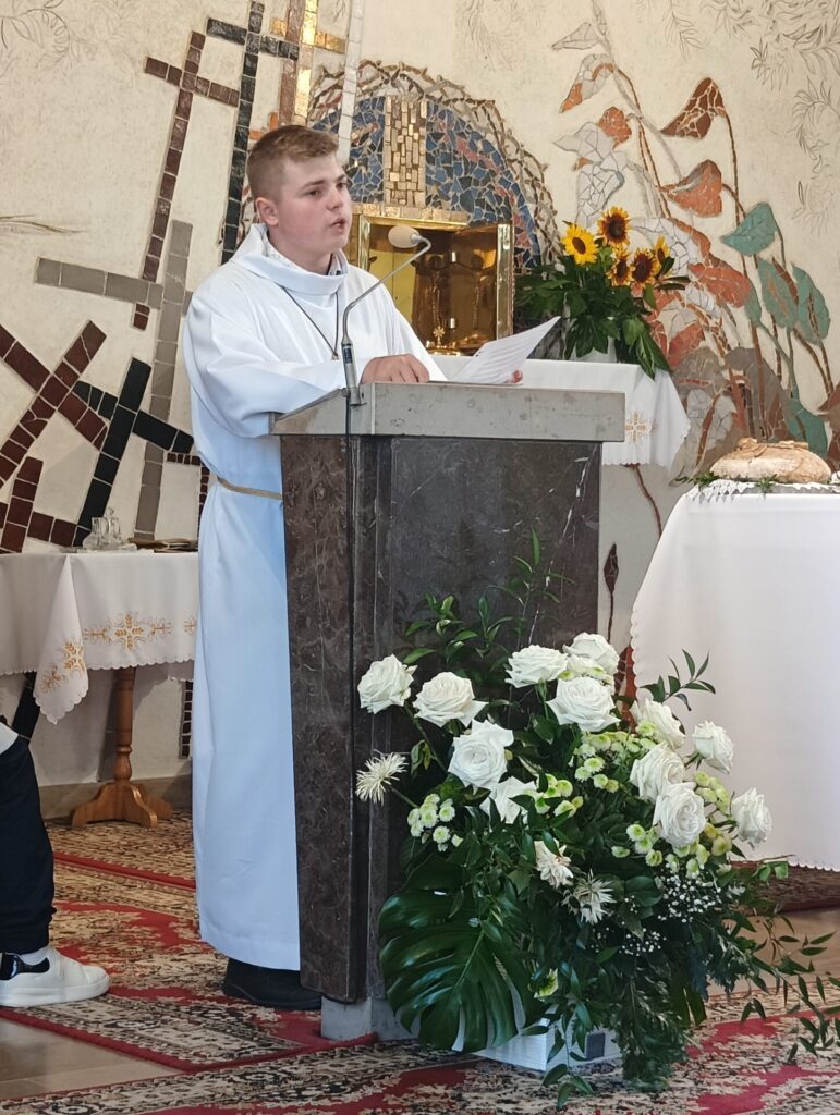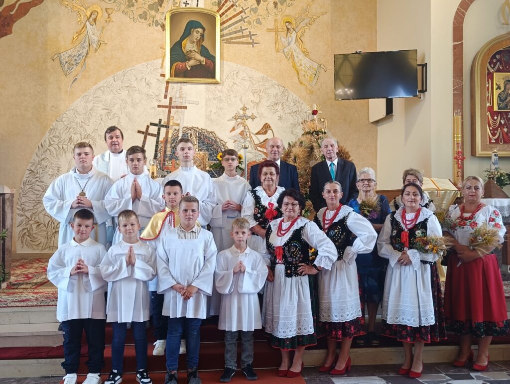 Po zakończeniu Eucharystii wykonawcy wieńca wraz z Liturgiczną Służbą Ołtarza i Ks. proboszczem wykonali sobie pamiątkowe zdjęcia. A wieniec pozostał w świątyni i cieszy nasze oczy…