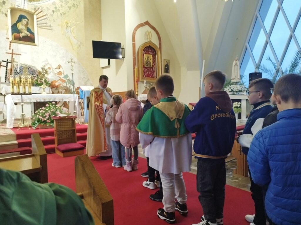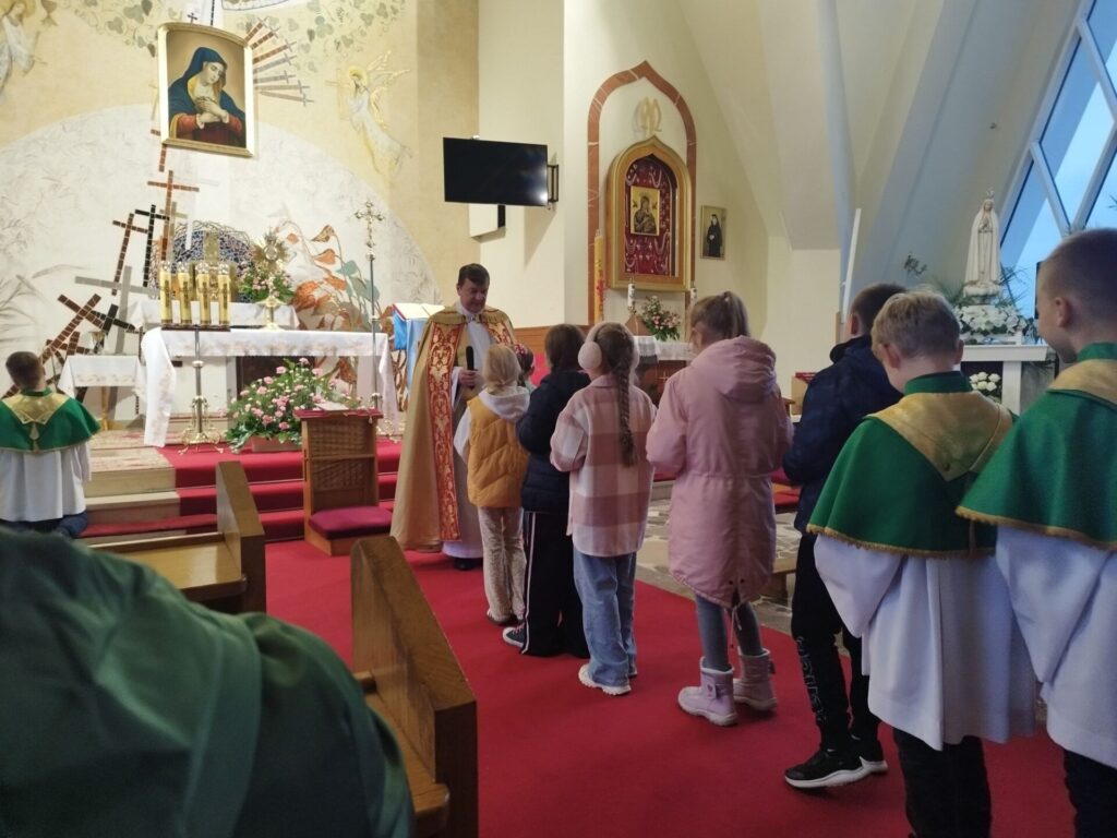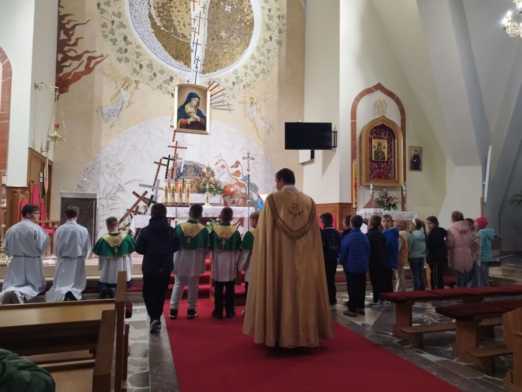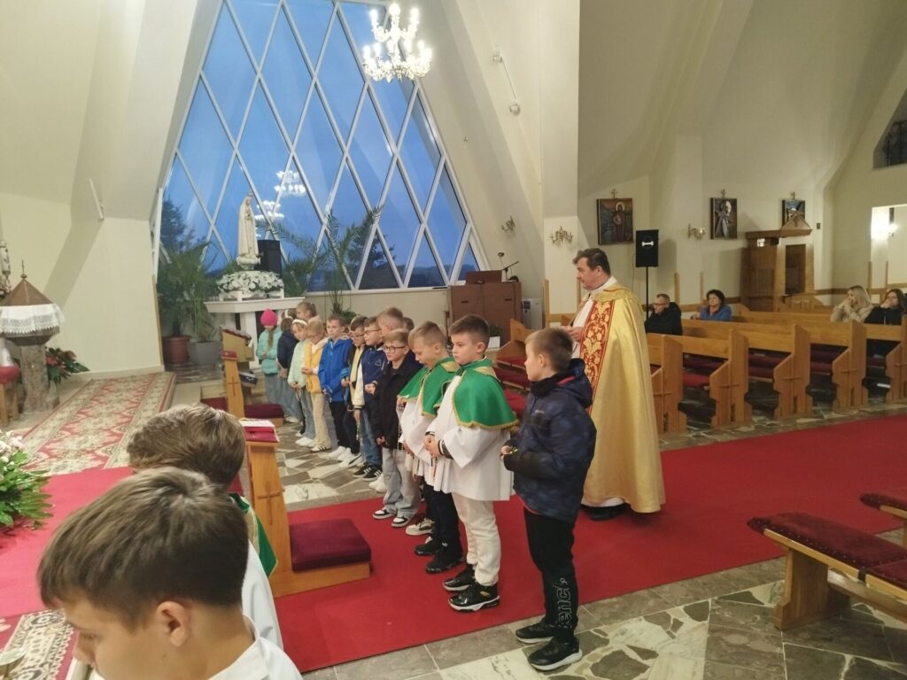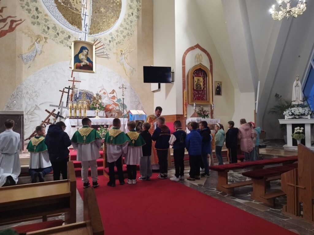 Modlitwę różańcową w poniedziałek, 6 października, poprowadzili uczniowie klasy III, którzy przygotowują się do przyjęcia Sakramentu Pokuty oraz I Komunii Świętej.