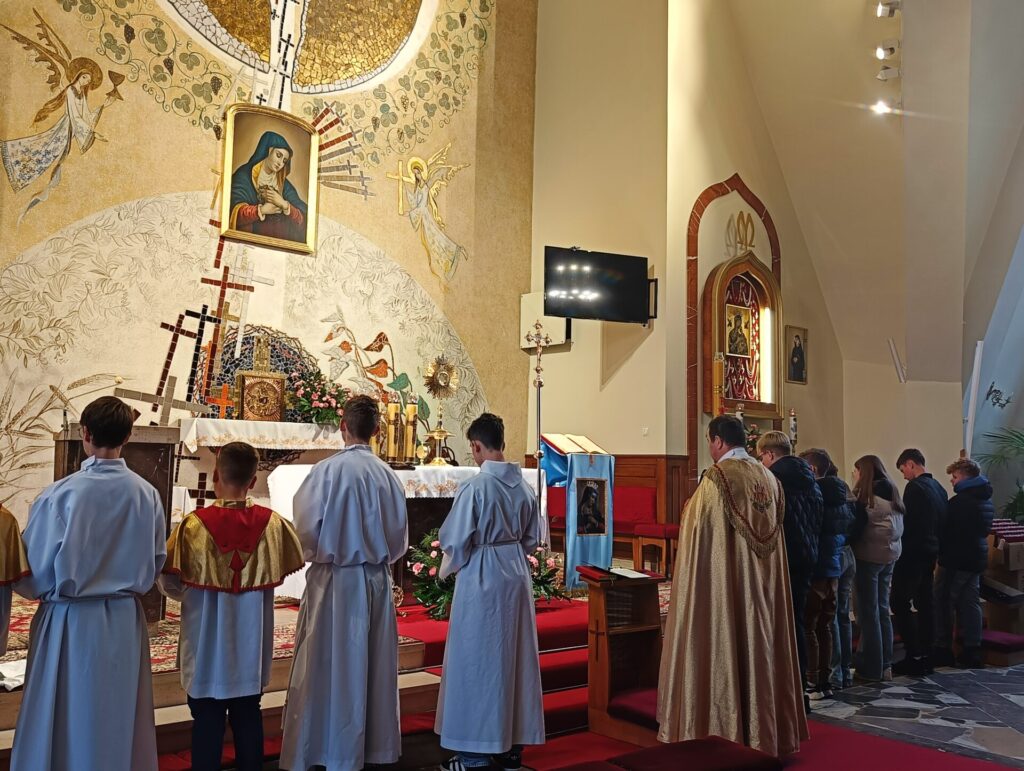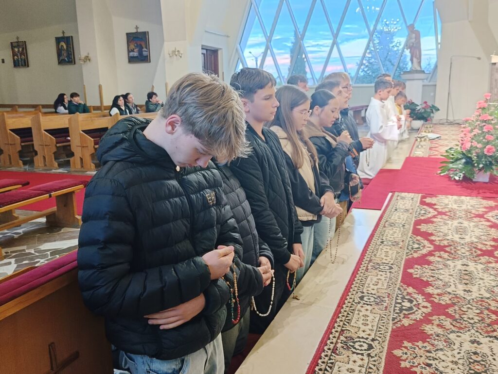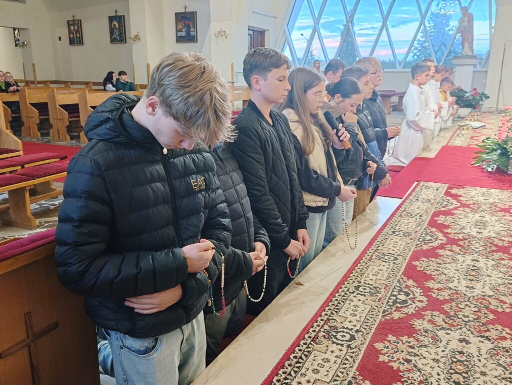 Z kolei 7 października na modlitwę różańcową zostali zaproszeni uczniowie klasy ósmej, przygotowujący się do przyjęcia Sakramentu Bierzmowania. Poprowadzili oni różaniec, klęcząc prze głównym ołtarzem. To było jedno z ich comiesięcznych spotkań.