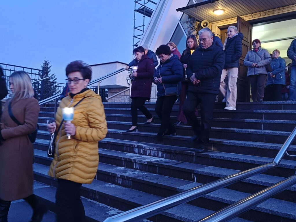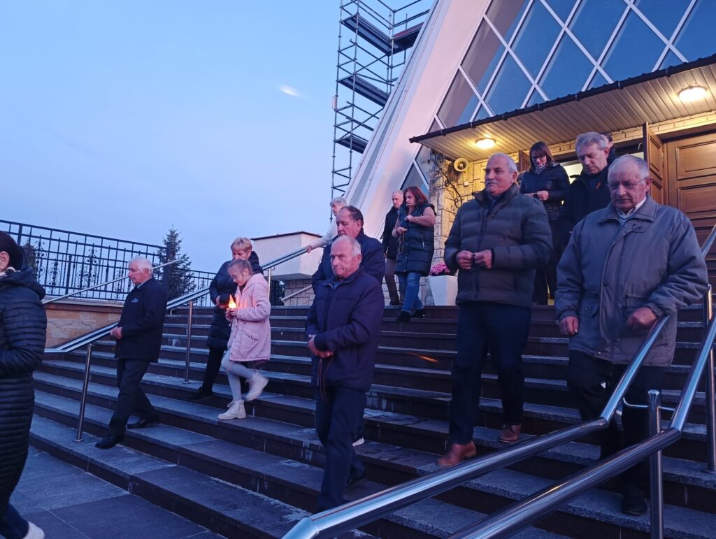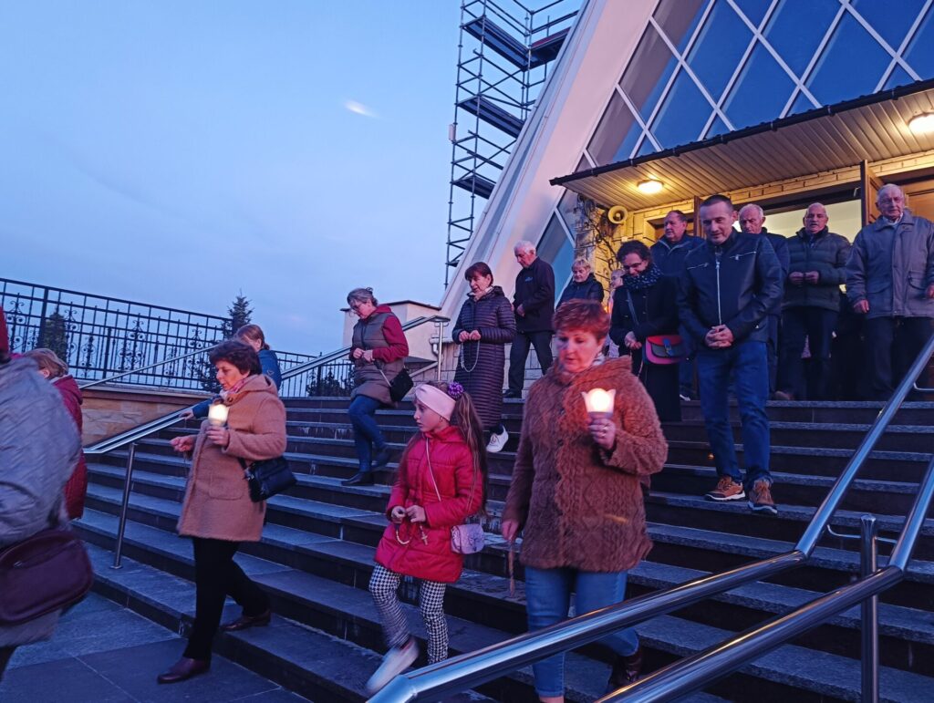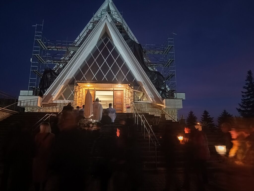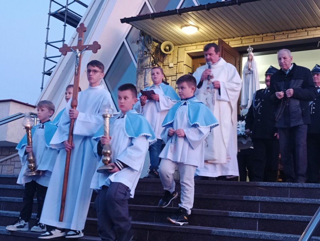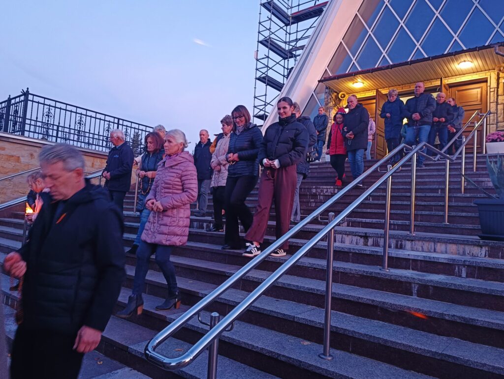Szósta procesja różańcowa z lampionami przeszła wokół świątyni 13 października. Figurę Matki Bożej Fatimskiej z dumą nieśli strażacy. Nabożeństwo fatimskie zakończyło się w nocnej już scenerii.