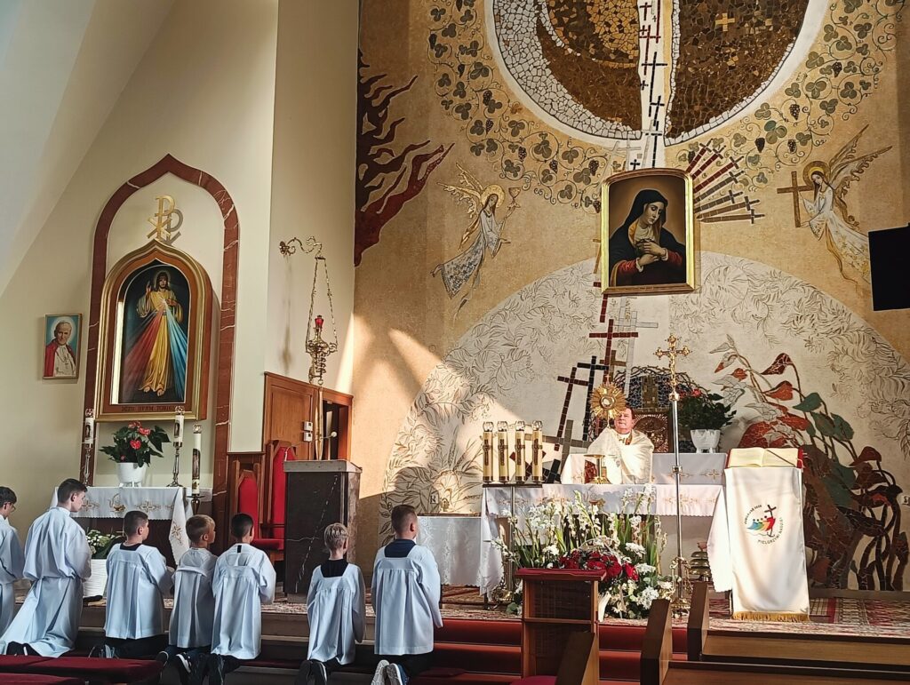 W pierwszy wrześniowy piątek (5.09) czciciele Serca Pana Jezusa modlili się podczas Mszy Świętej i nabożeństwa pierwszopiątkowego. Godzinę przed tym i dwie godziny po trwała adoracja wystawionego Najświętszego Sakramentu. Grupa Modlitewna poprowadziła to dwugodzinne czuwanie, po połowie w ciszy i głośno. Modlili się: Dorota i Andrzej Pikul, Beata i Jan Wójcik, Danuta Pikul, Bernadeta Pabian, Janina Frąc, Paulina Pikul. Kapłańskie błogosławieństwo zakończyło tę adorację.