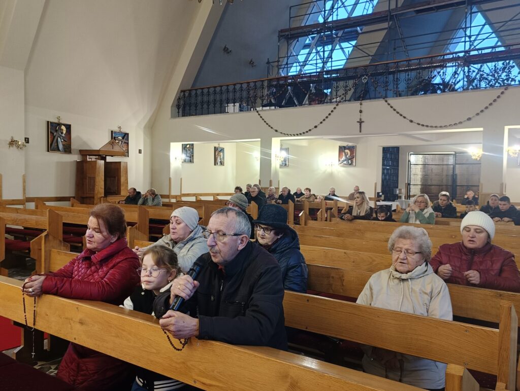 Dzień Edukacji Narodowej (14.10.2025) stał się stosowną okolicznością, aby nasi nauczyciele – emerytowani i czynni zawodowo, poprowadzili modlitwę różańcową. Uczynili to: Kazimiera Wąż, Krystyna Wenc, Irena Klich, Bernadeta Pabian i Waldemar Szlosek. Był to wyraz troski pedagogów o dobre wychowanie dzieci i młodzieży, z Bożą pomocą.