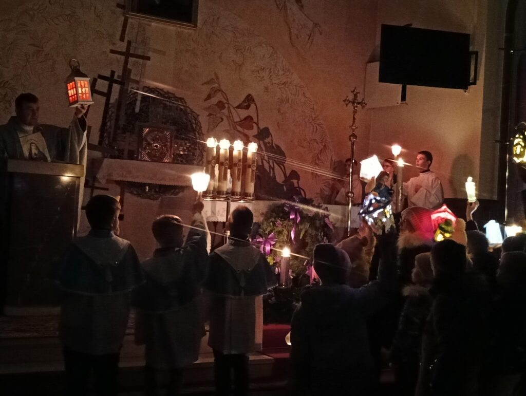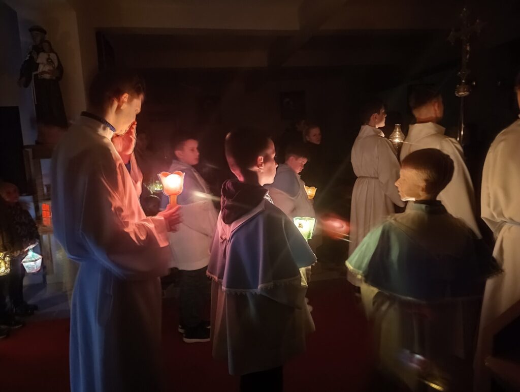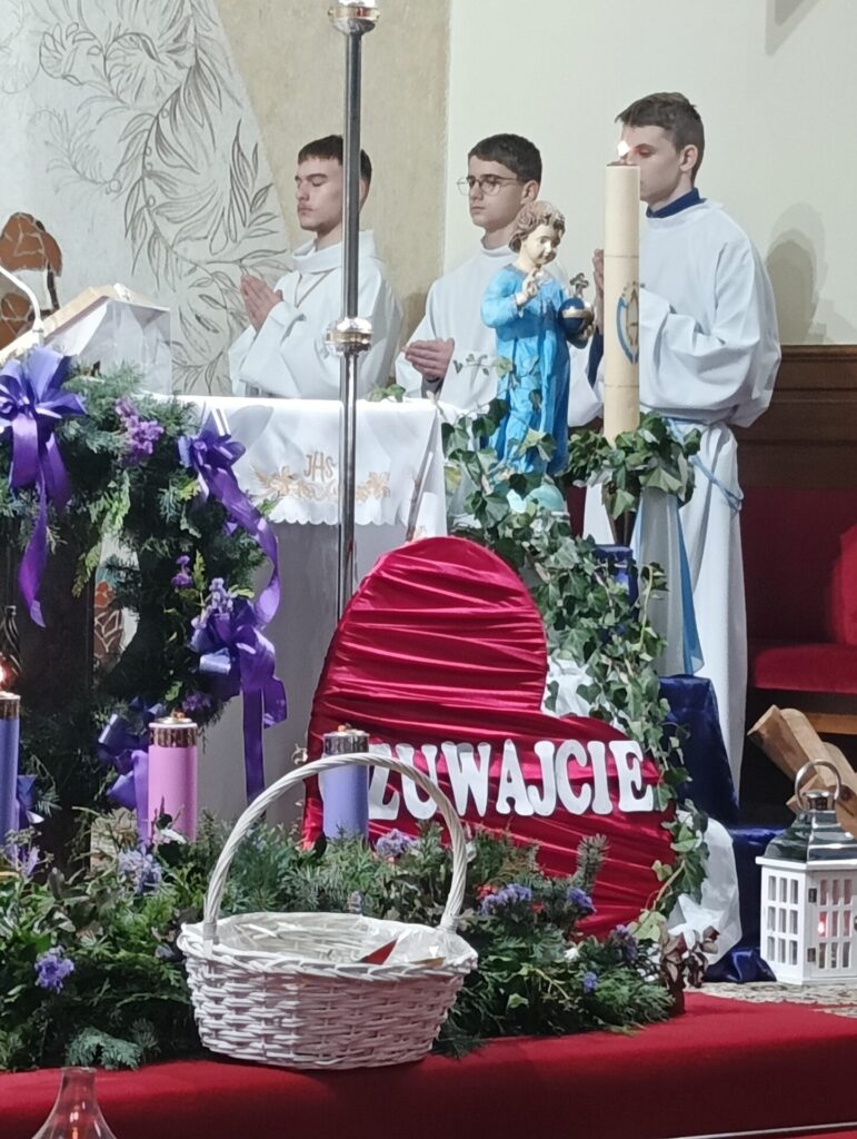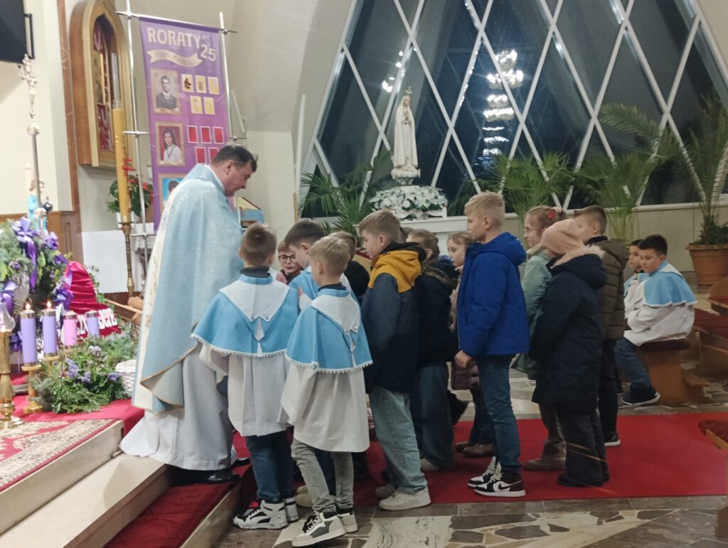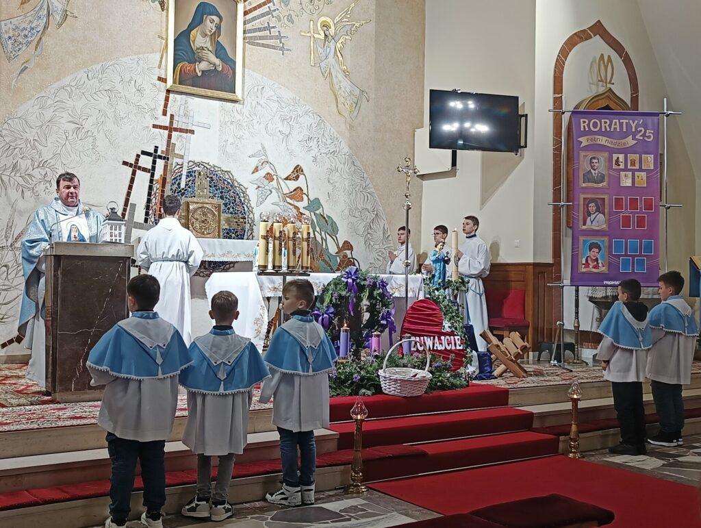 W Mszy Świętej roratniej bierze udział spora grupa dzieci. Przynoszą one serca z wypisanym dobrym uczynkiem z tego dnia, wkładają je do wystawionego kosza, a po zakończeniu nabożeństwa odbywa się losowanie trzech serc. Wylosowane dzieci zabierają figury Matki Bożej do domów. Wszystkie serduszka zawisną na choinkach wokół szopki.