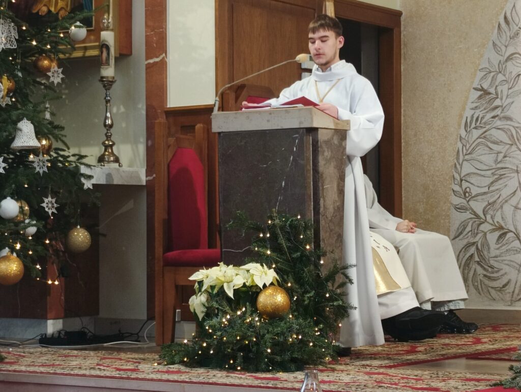 Na zakończenie Eucharystii Ksiądz Proboszcz pobłogosławił złoto, kadzidło, mirrę, kredę i wodę. Kredą napisaliśmy na drzwiach naszych domów: C+M+ B 2026 – Christus Mansionem Benedicat – Niech Chrystus błogosławi temu domowi.