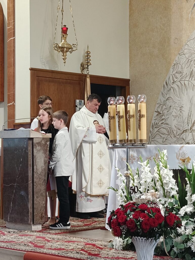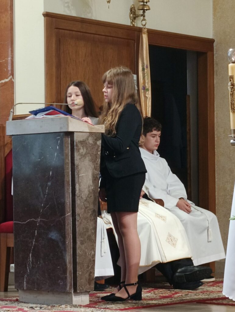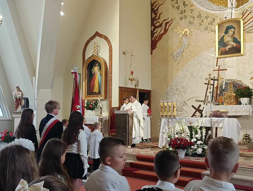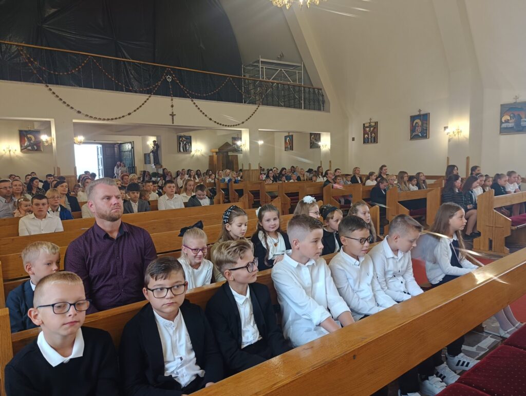 Uczniowie dwóch placówek oświatowych – przedszkola i szkoły podstawowej z Bogiem rozpoczęli nowy rok szkolny i katechetyczny 2025/2026. W poniedziałek, 1 września, o godz. 8.00 wszyscy uczniowie, grono pedagogiczne i rodzice podczas Mszy Świętej wypraszali u Boga łaskę owocnej nauki. Szkołę reprezentował również poczet sztandarowy. Na zakończenie Ks. Proboszcz udzielił kapłańskiego błogosławieństwa.