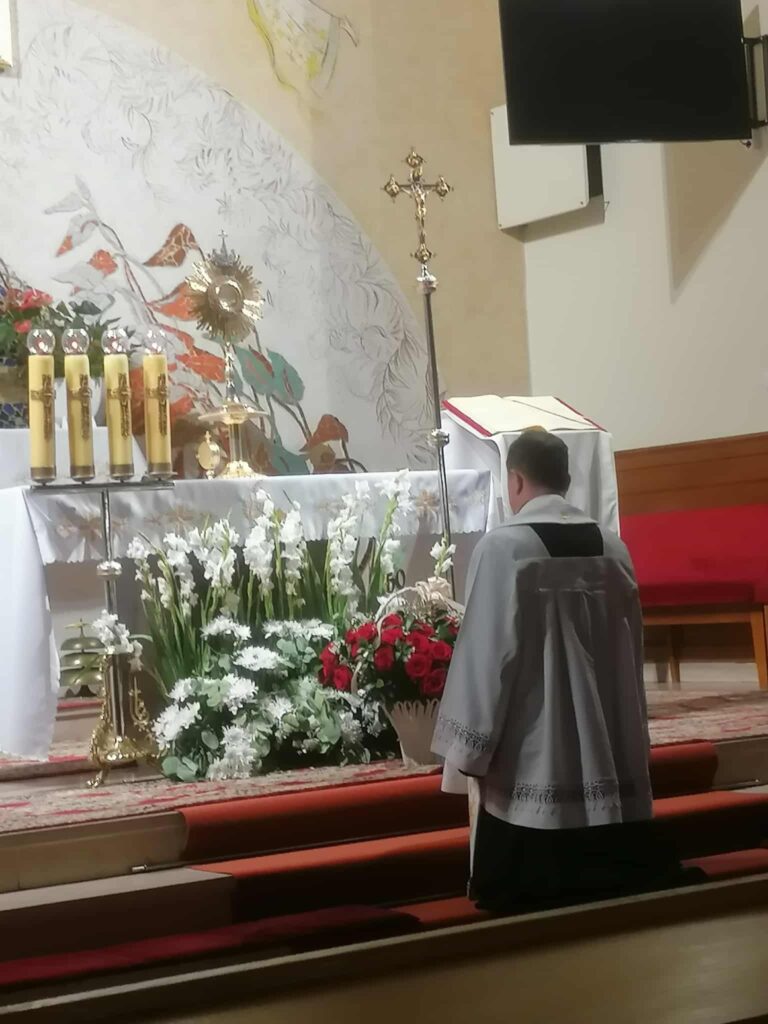 Pierwszy czwartek września (4.09.2025) to tradycyjnie już nocna Godzina Święta. Parafianie wysłuchali fragment opisu Męki Pana Jezusa według objawień mistyczki św. Katarzyny Emmerich. Na zakończenie czuwania w ciszy Ks. proboszcz udzielił zebranym błogosławieństwa Najświętszym Sakramentem.